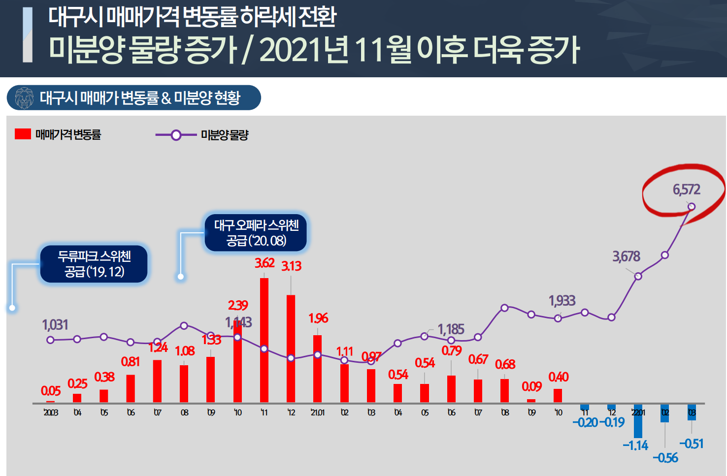 2021년 11월 이후 급등했던 대구 미분양 물량이 꾸준하게 소화되며 지역 분양 시장이 점차 안정화되고 있습니다. 하지만 양극화 현상이 매우 심하게 나타나고 있는 가운데 수성구 일대 아파트들이 선전하고 있는 것으로 나타나고 있습니다.