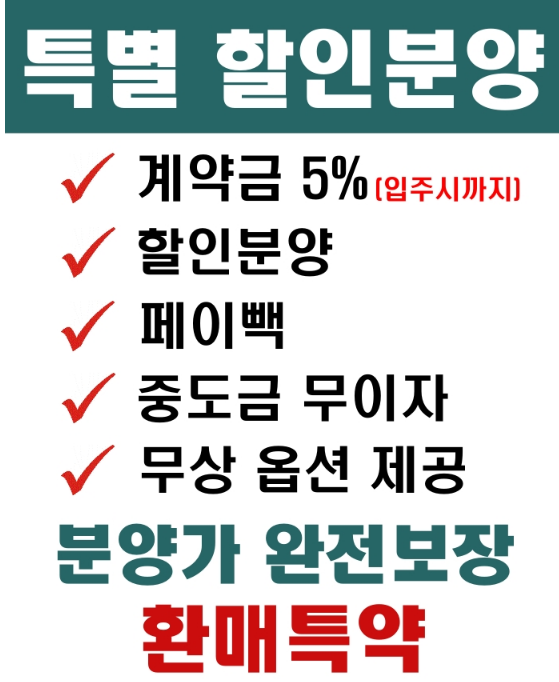 안녕하세요. 전문가 분양입니다. 대구 수성 포레스트 스위첸 아파트가 2025년 1월 입주예정인 가운데 미분양 잔여세대를 파격적인 조건으로 분양하고 있습니다. 파격적인 조건은 분양 총액 15%내에서 할인적용을 해주고, 계약자 페이백 2,500만(84A기준)원을 돌려주고 있으며, 환매는 입주 후 2년후입니다. 계약금은 분양대금 총액에 5%만 있으면 가능하고 500만원만 있으면 계약서 발행 가능합니다. 세대별 에어컨도 74A, 84A 각 2대, 큰평형은 4대 무상지급하며, 중방상판 엔지니어스톤 무상교체, 작은방 붙박이장 무상지급 등 정말 많은 조건입니다. 지금 모델하우스 오셔서 구경하시고 파격적인 조건의 혜택을 받고 내집마련을 하시기 정말 좋은 기회입니다.