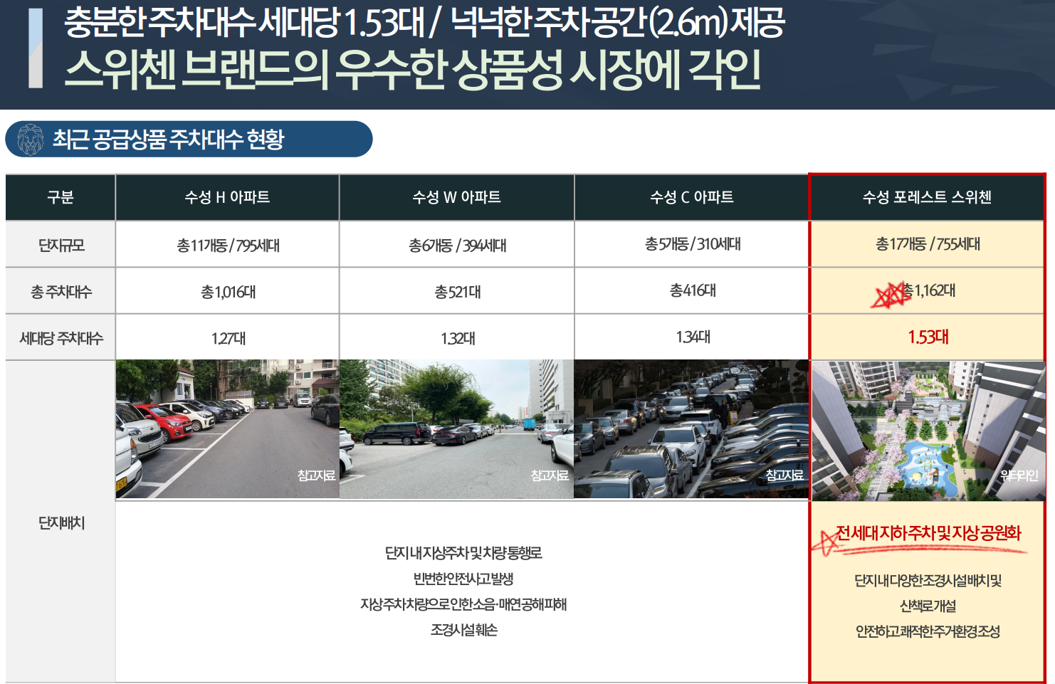 지하 7층부터 지상 15층 규모를 가진 17개동이 만들어지며 아파트 755세대를 공급합니다. 차량 보유율이 증가하는 가운데 일반 아파트 주차비율이 1.2대가 대부분인데요. 사업지는 가구당 1.49대 비율을 적용한 1162대 주차장을 확보하여 늦은 퇴근길에도 여유롭게 주차할 수 있겠습니다.