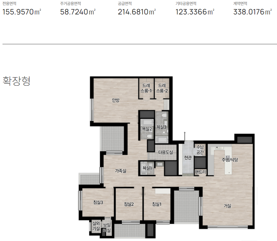 의정부 롯데캐슬 나리백시티는 국민평형인 84㎡부터 전용면적 102㎡에서 155㎡까지 중대형위주의 평형을 모두 9가지 타입으로 세분해 실수요층이 가족구성원수, 생활방식, 취향등 다양한 요소를 고려해 선택할수 있도록 폭넓게 준비되어 있습니다