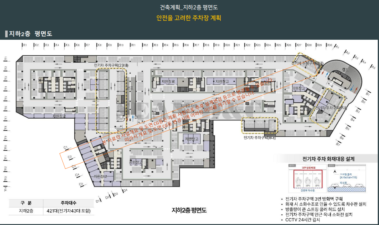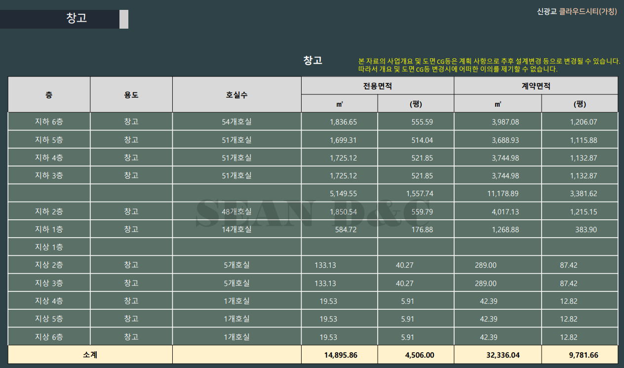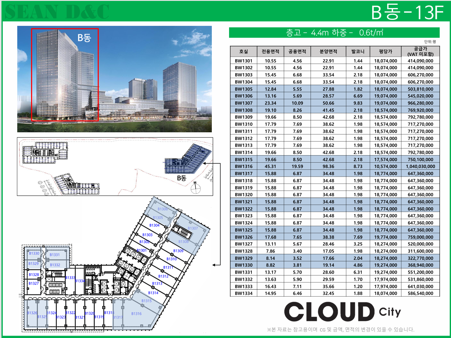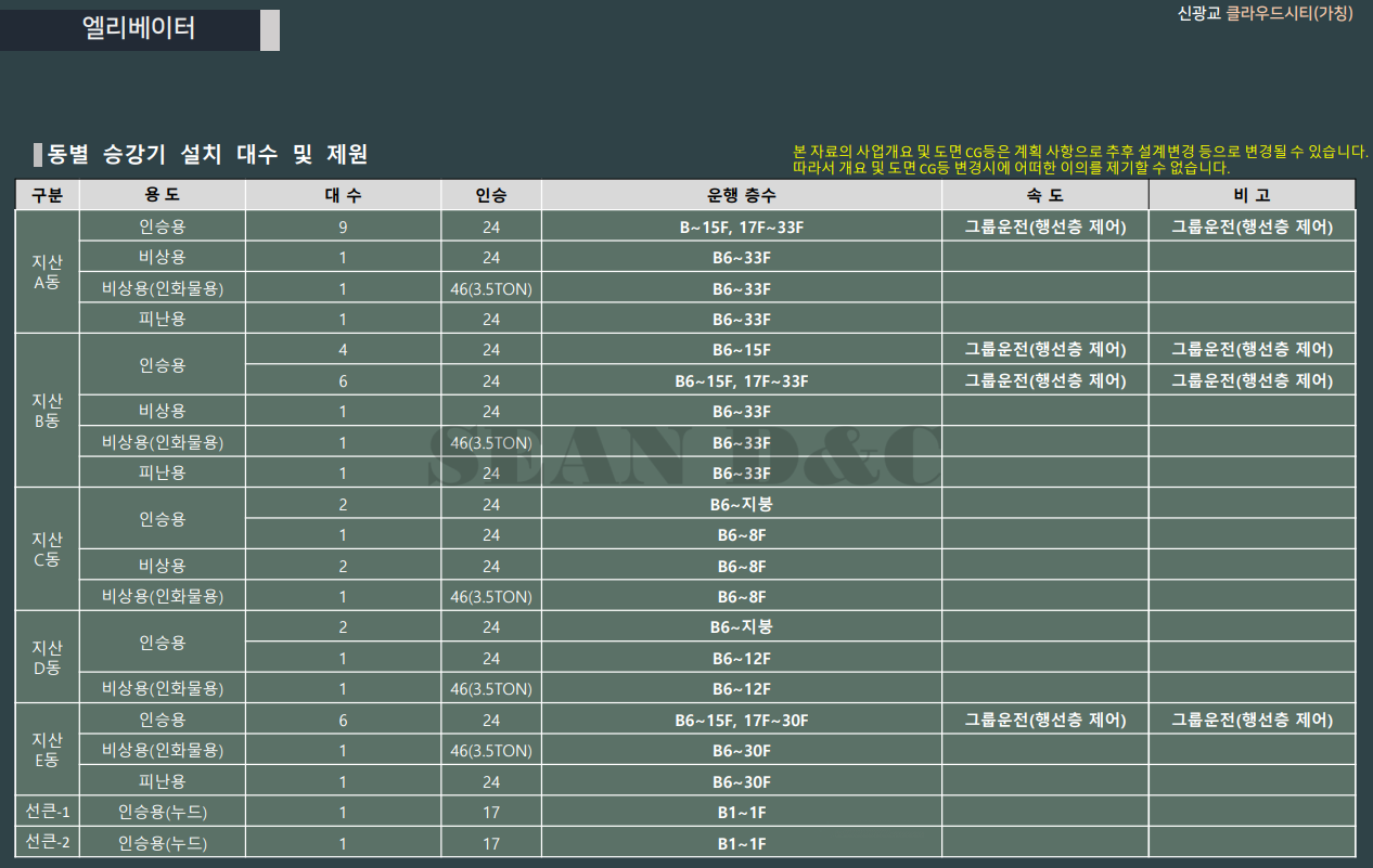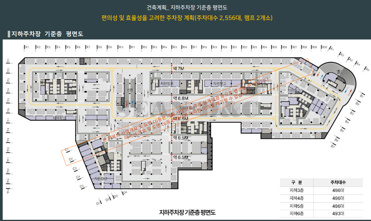 신광교 클라우드시티는 지하 6층에서 33층, 5개의 동으로 그 높이가 140M에 달하고 총 2,769실이 조성되는 매머드급 지식산업센터입니다. 또 지산과 지원시설용을 합해 총 2,556대의 주차장을 구획하는데요. 층당 480대의 차량을 수용하고 57% 가량은 확장형으로 설계해 비즈니스에 편리합니다.