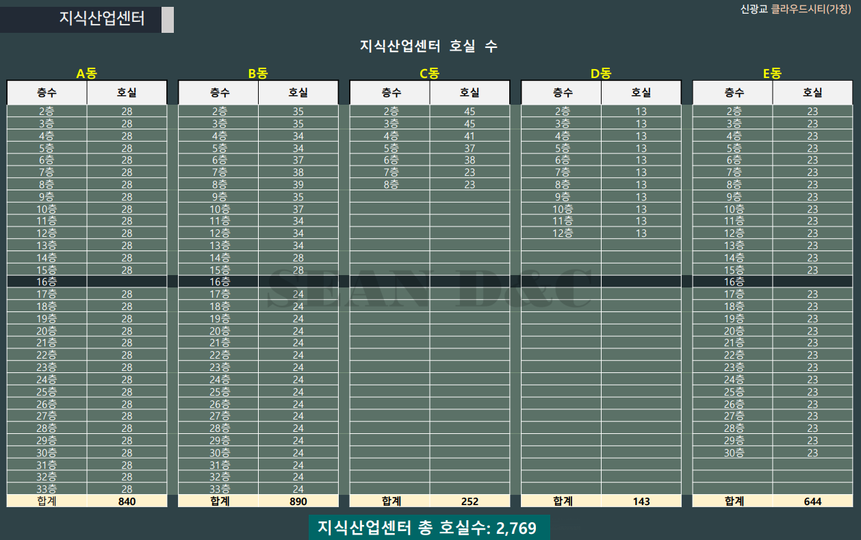 신광교 클라우드시티는 연면적 약 35만㎡에 달해 축구장 48배, 63빌딩의 2배, 서울 잠실 올림픽 주경기장의 약 3배 크기를 자랑하며, 지하6층 지상33층 5개동 총 2,769실 규모의 매머드급 지식산업센터로 건축됩니다. 이러한 지식산업센터는 공실률도 적으며, 여기에서 근무하는 직원들은 만족도가 높아서 이직율도 작은것으로 나타나고 있습니다.