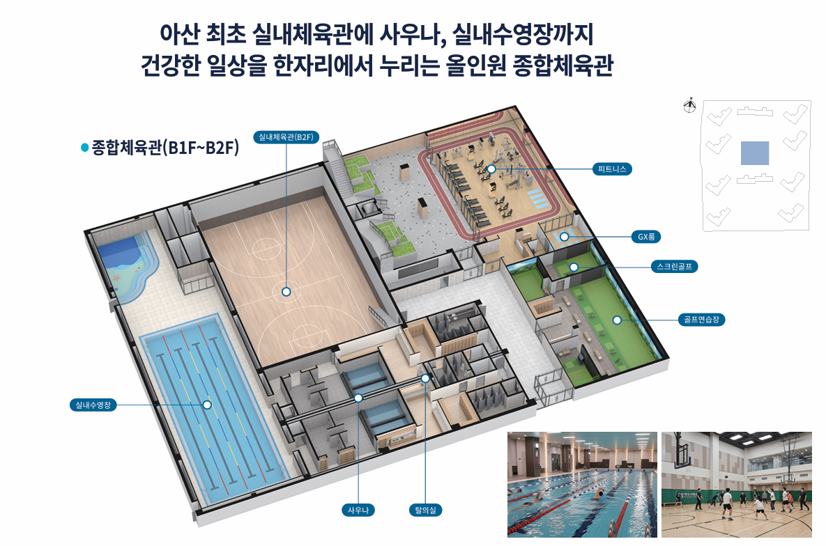 커뮤니티센터 역시 대단지에 걸맞은 시설 구성을 갖추고 있었는데, 피트니스, GX룸, 스크린골프, 실내체육관, 사우나 등 다양한 활동 공간을 마련했고요. 실내수영장과 유아풀이 포함된 점은 지역 내에서도 차별적 요소로 꼽혔습니다.