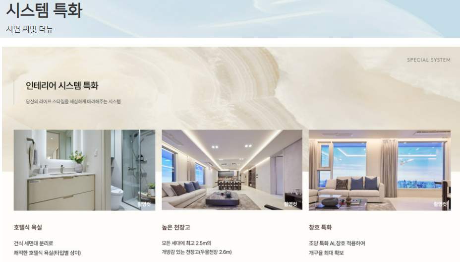 '써밋' 브랜드에 걸맞게 서면 써밋 더뉴의 인테리어는 감각적이고 세련된 디자인과 최고급 마감재를 사용해 품격을 높입니다.